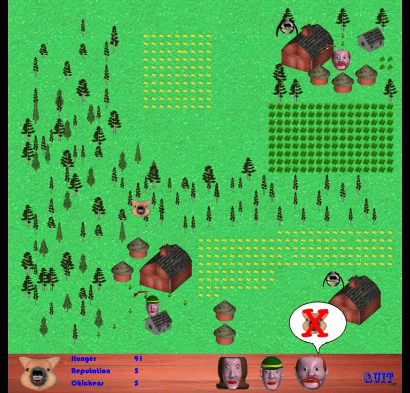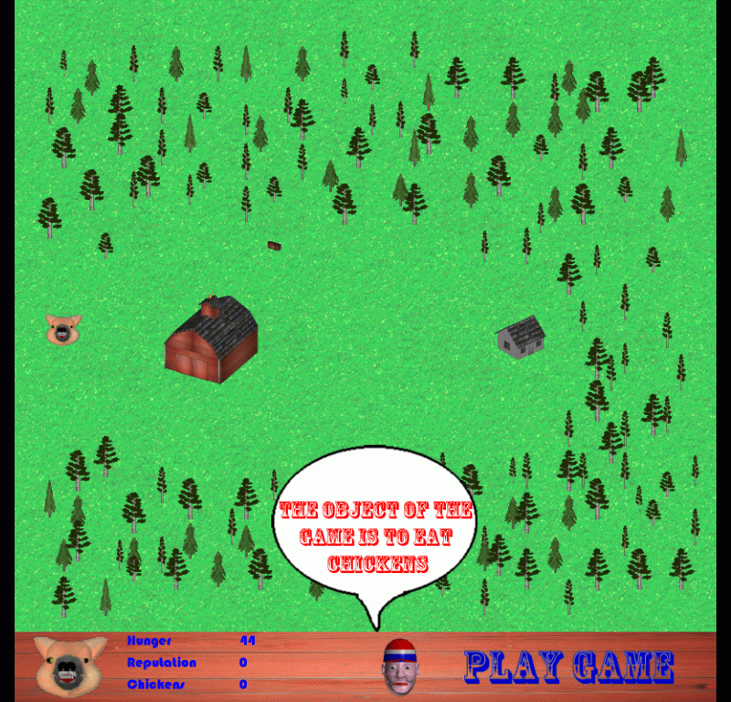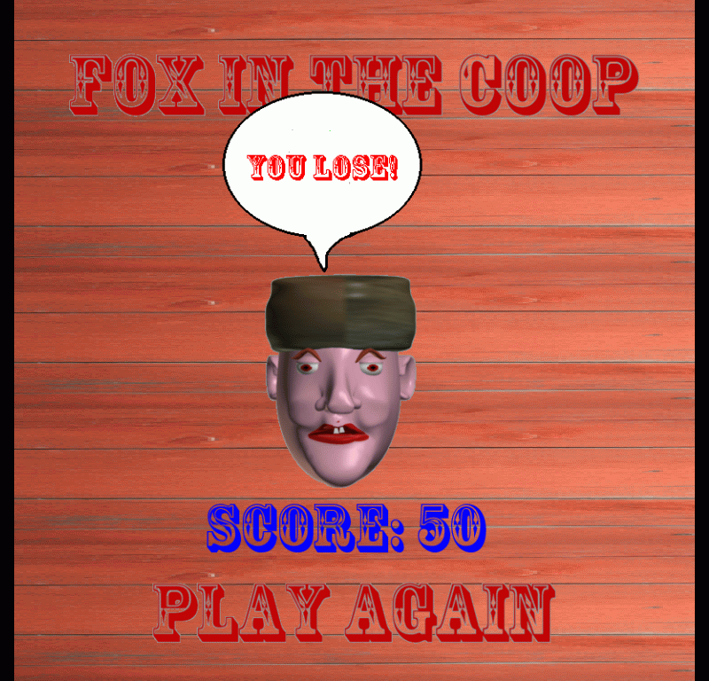 A fun little casual game Fox In The Coop is about being a fox and doing what foxes do best and that is raid farmers chicken coops. Your fox must avoid starvation and chance being turned into a fox hat. Once your foxes reputation reaches 10 it's time to move on to different farm.